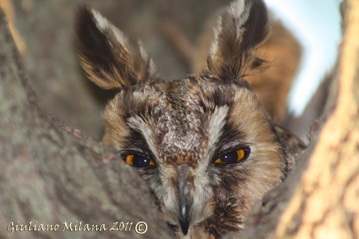 | Grazie a tutti....l'individuo si trovava all'interno di una sughera, la sughera stessa era nel cortile di una casa (in italia diremmo cascina) di campagna in Andalusia. In quel periodo cercavo borre di Barbagianni per un lavoro e i proprietari, dicendomi di non avere visto Barbagianni, mi portarono nel loro giardino a vedere il gufo. La cosa impressionate era l'abitudine dell'animale all'uomo...con molta probabilità era in cova e non era la prima volta che quella sughera veniva scelta. |