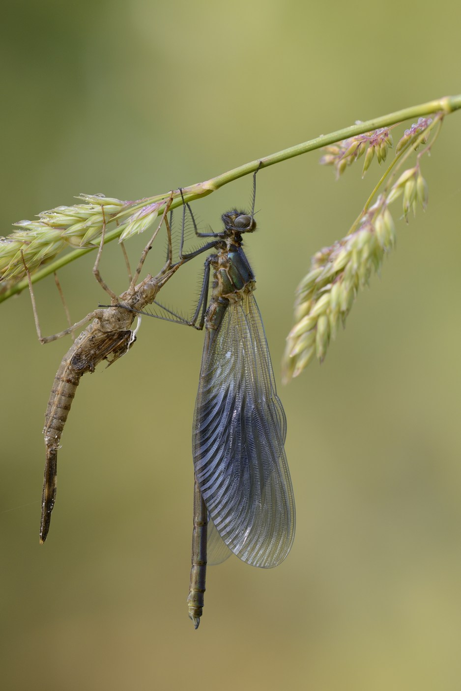 Calopteryx splendens maschio ed esuvia