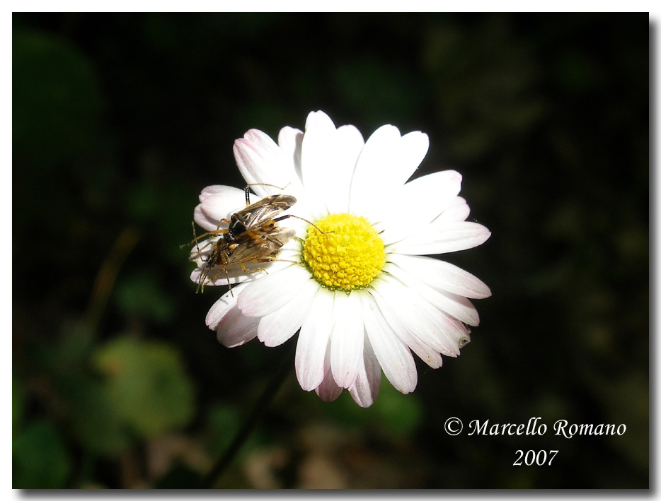 Sempre durante l'escursione del 13 maggio sulle Madonie, ho sorpreso una coppia di Miridae, su di una piccola margherita, colpita da un raggio di sole che filtrava attraverso la chioma di una grande quercia.