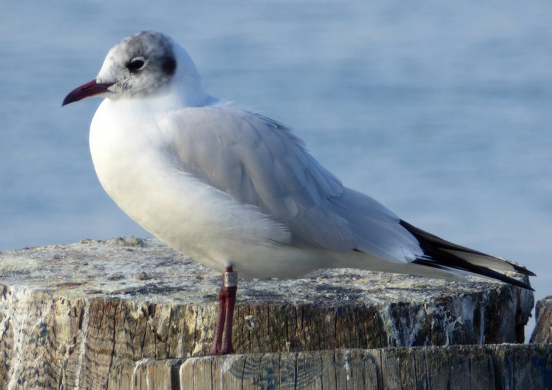 il becco e le zampe di questo esemplare (inanellato ) sono più scure di quelle degli altri gabbiani comuni...e sempre lui????