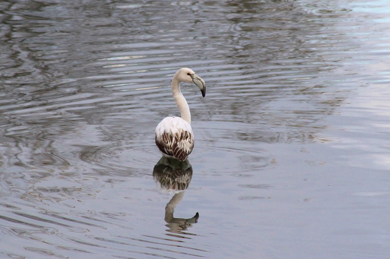 Ovviamente, Gabriele, da solo non ci può arrivare.., ma il fatto è che, in teoria, potrebbe trattarsi (dato il luogo in cui è stato fotografato)anche di un esemplare aufugo della specie esotica, che in certi posti vengono tenuti a scopo "ornamentale", non sono così ferrato nei piumaggi giovanili dei fenicotteri, ma questo sembra proprio un "ruber". Marioeffe, hai per caso visto se aveva anelli colorati sulle zampe?, questo potrebbe essere d'aiuto x capirne la provevienza.