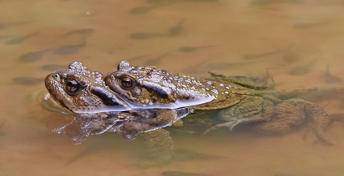 Grazie per la foto, che arricchisce la nostra galleria fotografica: hai immortalato maschio, femmina, modo di accoppiamento, ovature. I girini non so di chi siano... l'acqua è un po' troppo opaca per capire...