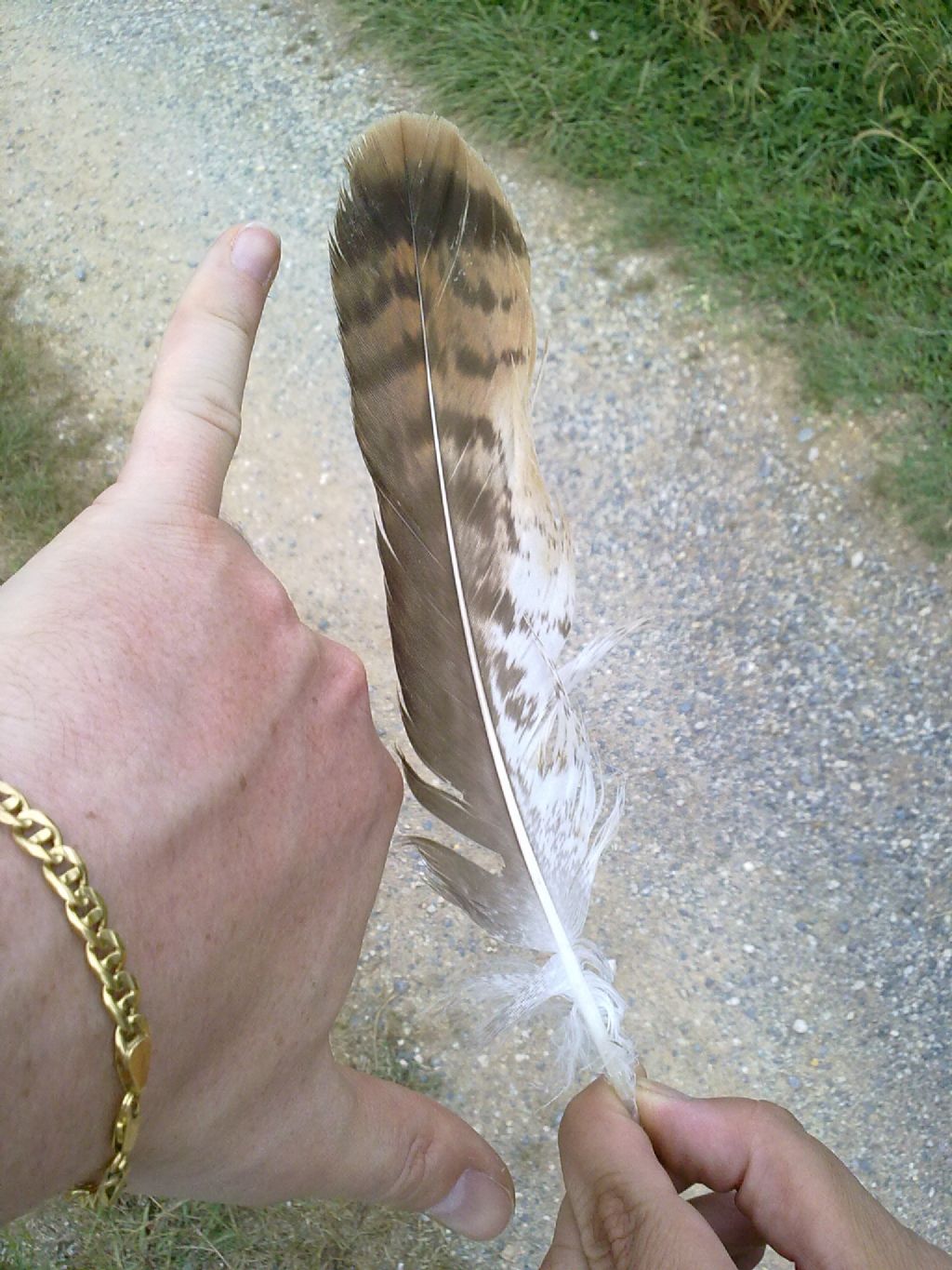 Ciao a tutti, chiedo aiuto sull'ID di questa penna trovata ieri nel cuneese, zona dell'Altopiano del Bainale (400 m. di quota circa). Sospetto poiana o gheppio, ma in zona girano anche nibbi e da qualche giorno anche una poiana codabianca...dimensioni intorno ai 20 cm (la mia spanna come righello :D )