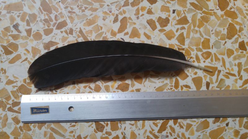 Alpi apuane, mai vista prima. Nelle foto si vede male ma non è nera, è di un color bruno molto scuro con delle striature appena visibili, soprattutto in controluce. L'estremità della penna è bianca (solo un mm o due)