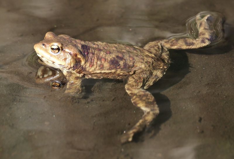 Pogno, prealpi novarese, 26.02.2026. In una valletta boschiva nel ruscello che porta la acqua nel laghetto dei pescatori. Direi che le rane (Rospi?) che ho viste si sono radunate per la riproduzione, ma ancora non depositavano le uova. Un maschietto si già teneva sulla schiena di una femmina per non cedere il posto a qualche altro maschio. Quando la femmina ha deciso che ero già troppo curioso si è immersa, ma si vedevano bene anche sotto l'acqua. Non so di che specie si tratta, magari sono state anche due specie, perchè un maschietto libero aveva la colorazione diversa. Scusate le espressioni da ignorante, ma in questa materia sono proprio quello.  Immagine: