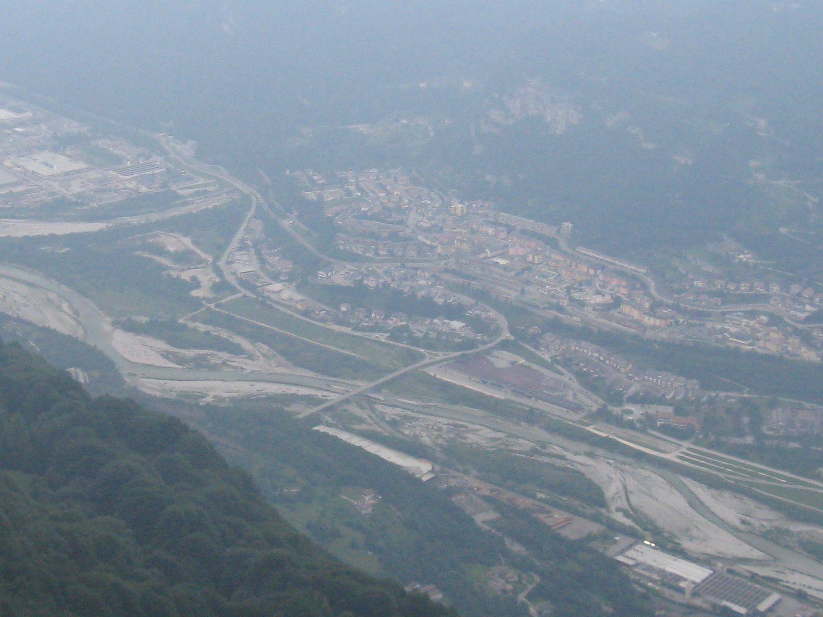 Macino ora metri su metri, la vista sulla Valle del Vajont è offuscata dalla nebbia, mi soffermo ancora un attimo a fotografare la frazione Ertana con la diga più in basso.