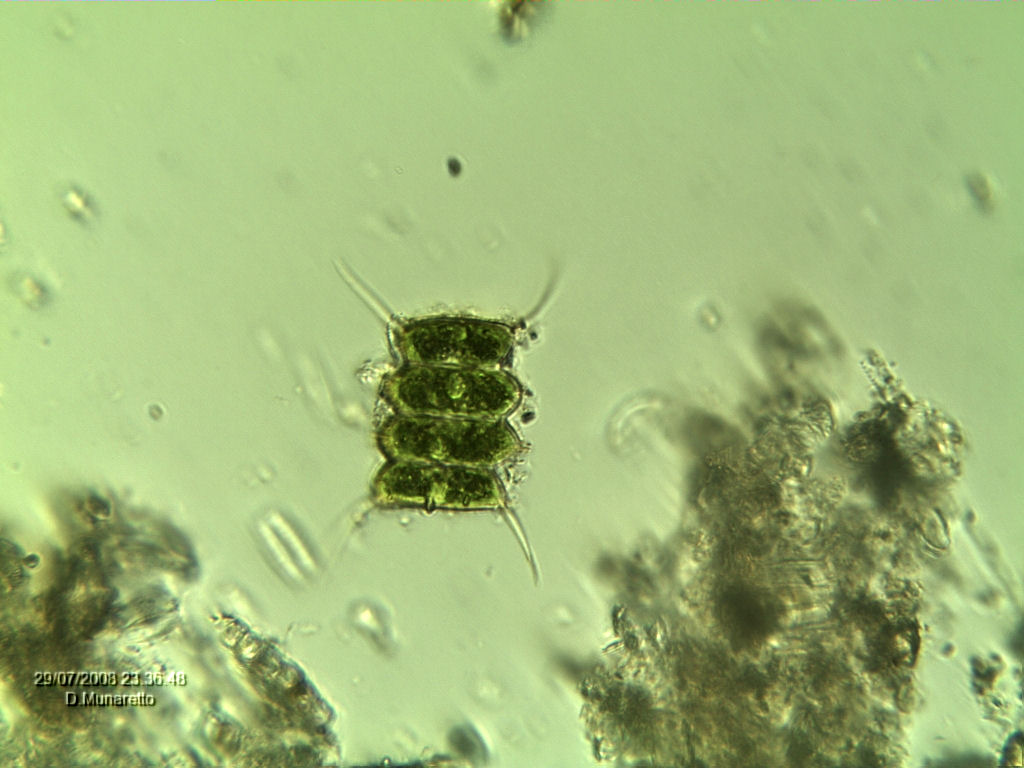 Anche secondo me si tratta di Scenedesmus quadricauda. Sulle alghe aspetto però il responso finale da Chiton. Davide, dove l'hai trovata? Dimensioni? Ciao Marco |