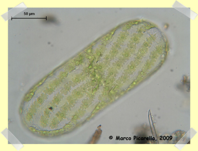 Tanto è bella da vedere quanto difficile è stata la sua classificazione, per cui alla fine sono ricorso all'aiuto dei Chiton. Secondo loro si tratterebbe "di una cellula isolata di Spirogyra, beccata o poco dopo la riproduzione o semplicemente isolatasi in seguito a frammentazione". La loro ipotesi non è del tutto priva di fondamento visto che nello stesso campione comparivano numerosi filamenti di Spirogyra.
