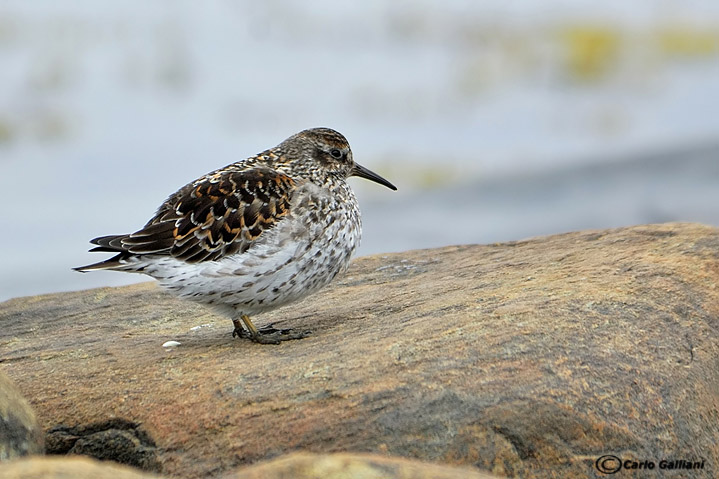 Perche' si chiama piovanello VIOLETTO? Perche' la livrea invernale ha un altro colore,tendente al viola. Le foto ritraggono invece la livrea riproduttiva.