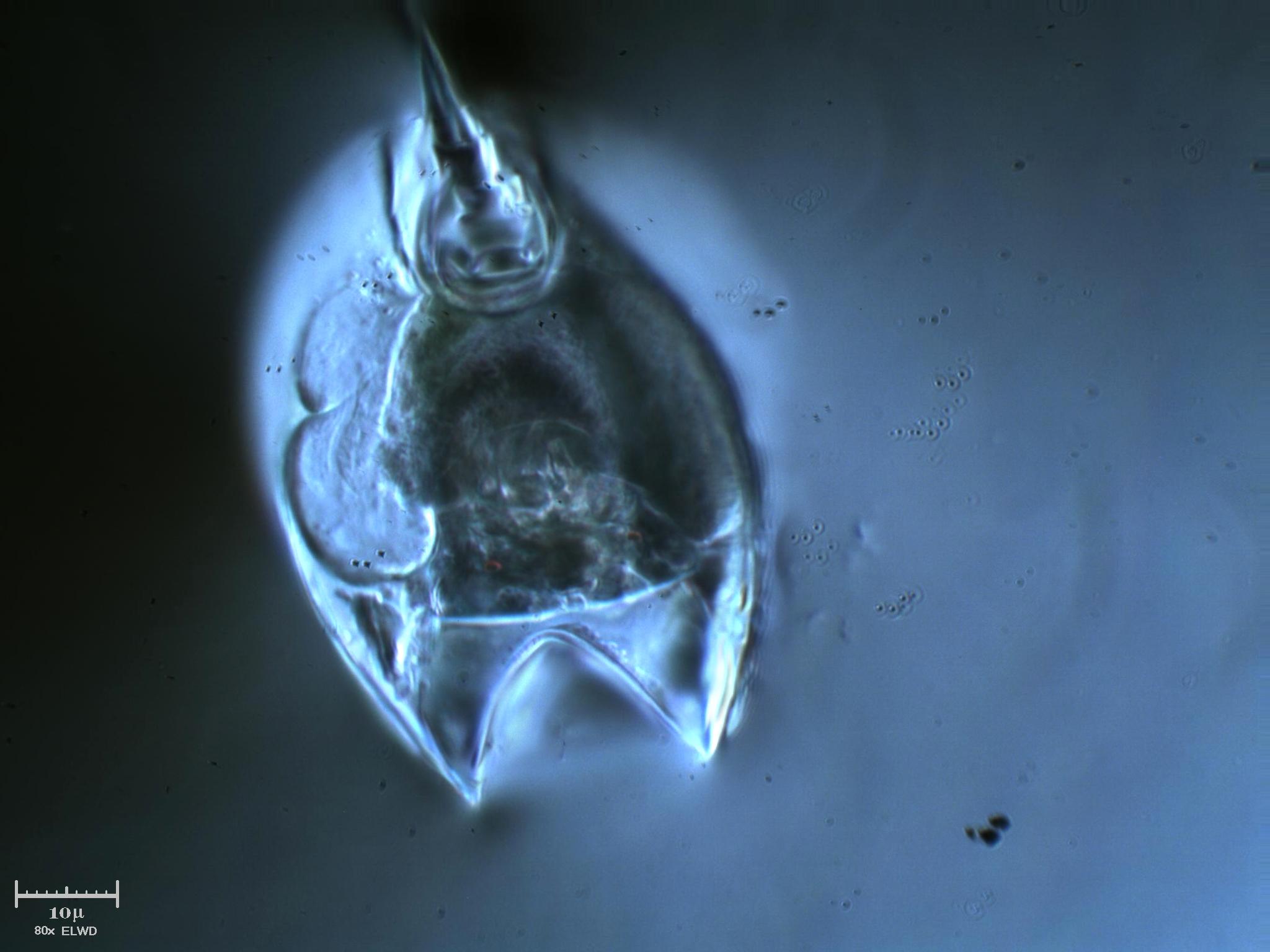 I colori? Quando usavo la compatta i colori c'erano tutti ma non c'era tutto il resto. Visualmente i colori ci sono, è la mia CCD che fa finta di niente. Soprattutto in luce obliqua circolare senza cover, che si avvicina alla microscopia elettronica (grande risoluzione, ma in tonalità di grigio, come si può vedere anche nelle foto del Suttore.) Non mi sono mosso io nelle tre pose al Rotifero, era lui che andava alla deriva. Ma un piccolo mosso si paga sempre nelle somme, se il risultato è accettabile. In questo caso il peduncolo, gli occhi e le due "corna" erano su piani focali molto distanti tra loro. E che si deve fare? Si piange con un occhio....