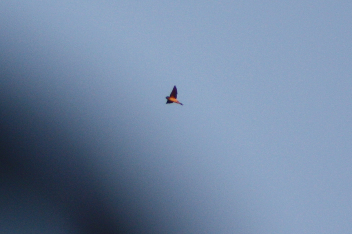 la sagoma mi sembra rossa anche nelle parti scure quindi forse svia un po'...sicuramente non rondone pallido che è comunque tutto scuro...se sei sicuro sia una rondine l'unica che mi viene in mente è la rondine (appunto) rossiccia, ma non l'ho mai vista e non conosco la distribuzione...