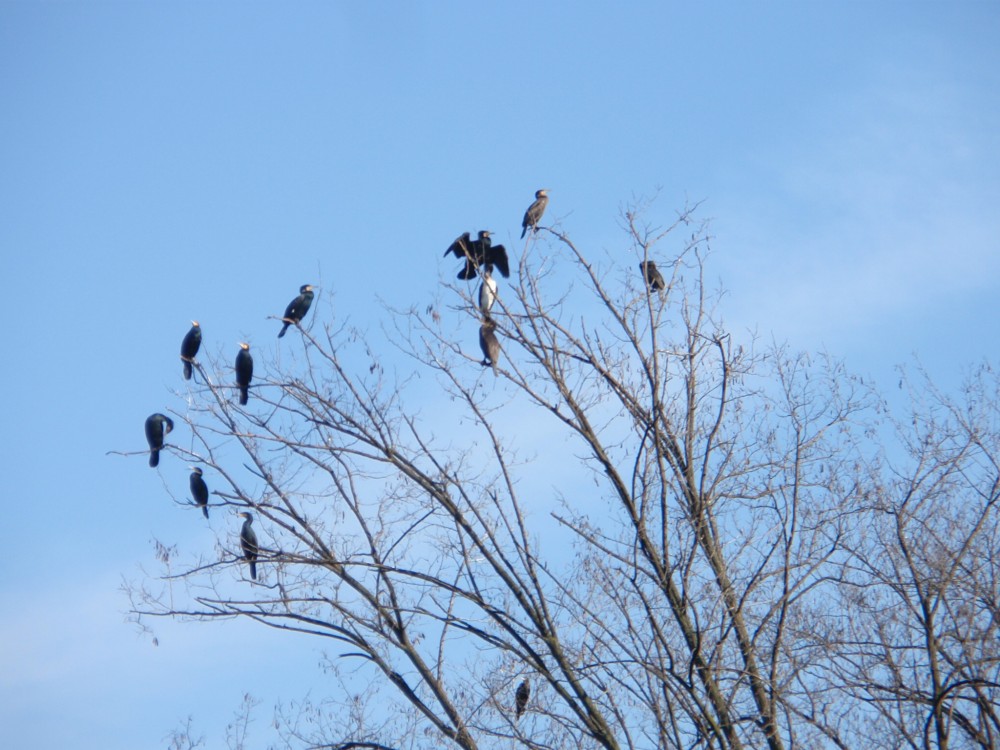 Sono dei Cormorani (Phalacracorax carbo ). Gli individui con il ventre più o meno chiaro sono giovani e/o immaturi.