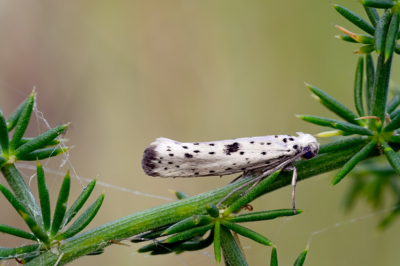 Direi che Yponomeuta plumbella è la determinazione più attendibile. Secondo UK moths questa è la sua descrizione: