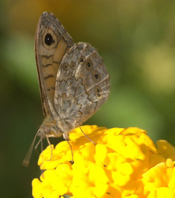 Con il beneficio del dubbio, a me sembra una Lasiommata megera.