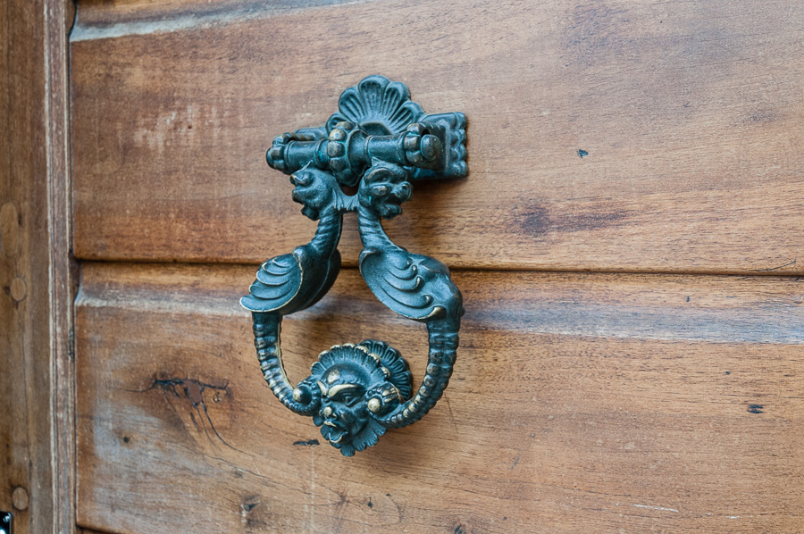 Ho controllato tutta la discussione per vedere se i battiporta che ho trovato ci sono già. Con mia grande delusione questo, visto a Bevagna (Umbria) e particolarmente originale, è a pagina 3. Direi che è proprio lui, anche se allora era meno impolverato. Lo metto lo stesso. Immagine: