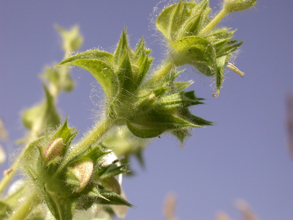 Ciao Renato , Ecco le altre foto di : Salvia argentea L. ...pianta endemica italica dei pascoli aridi che trova il suo limito settentrionale in ABRUZZO... alta da 30 a 80 cm , ramosa e vischiosa... con molto formiche sopra che sicuramente si nutrivano... le foglie basali sono molto lanose(bianco), da tutte le parti... i fiori sono in verticillastri di 4 a 6... , sepali mucronati... il labbro superiore bianco ha dei peli viola e quello inferiore è giallo/giallastro... , l'habitat è diverso della sua compagna (Salvia glutinosa L.) che preferisce gli ambienti piu'umidi .... Mario