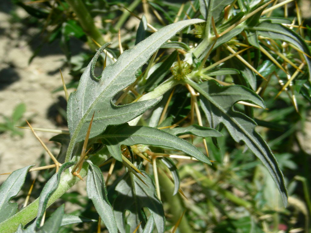 Ciao Franco , meno male che ci sono le pecorelle .... , togliamo il velo ... e il mio primo incontro con Xanthium spinosum L.1753 ( = Acanthoxanthium spinosum (L.) Fourr 1869 ) sempre in Abruzzo ... la sua altezza da 30cm a 100cm , ramificazioni rossastre a cespuglio con foglie pennato-partite ... è molto spinosa ... viene parassitata da larve (diptera) : Acanthiophilus helianthi ... il suo nome Xanthium (=giallo) spinosum dalle sue belle spine dorate ... e volgarmente nominata : Nappola o Lappola spinosa Mario