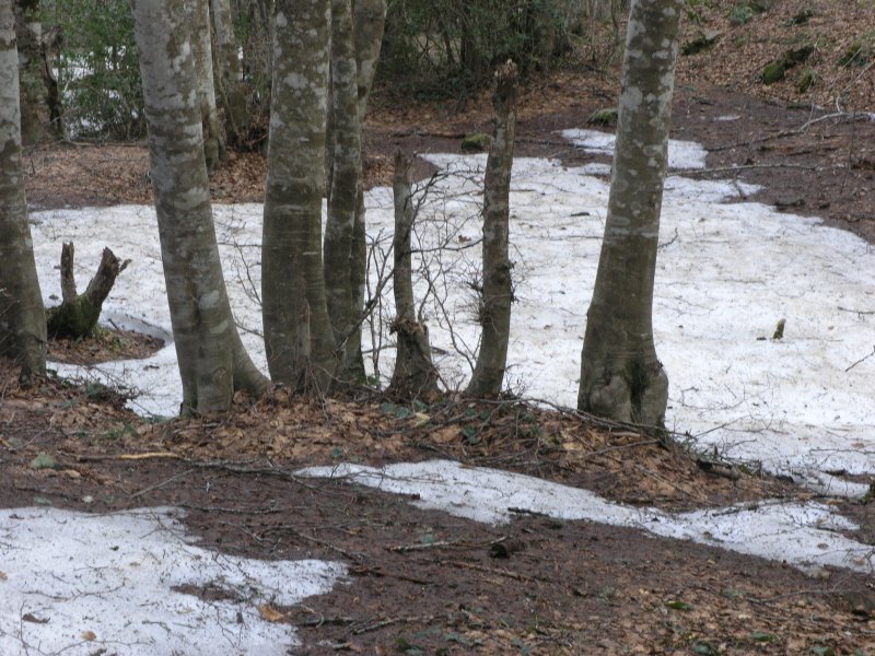 ed oggi 21 Aprile 2012, ritorno ancora per la terza volta sperando di trovare un clima diverso. invece, incredibile, ancora i ghiacciai non si sono sciolti! con le mani congelate, scaviamo tra le foglie alla ricerca del marzuolo, ma l'esito è disastroso: solo due soggetti. ma non mi arrendo, tornerò ancora per l'ennesima volta.