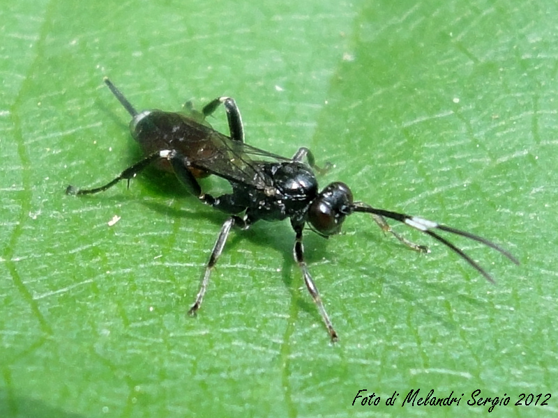 Sembra un Ichneumonidae (intravedo molti articoli nelle antenne, oltre all'evidente ovopositore). Per l'ID non so dirti altro, purtroppo. |