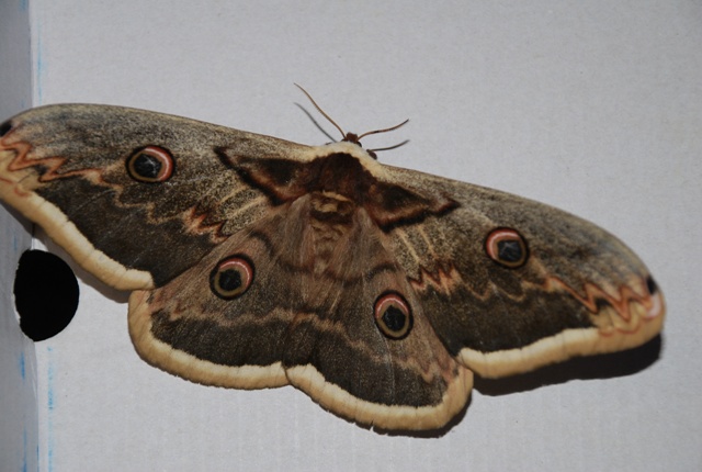 Saturnia pyri...che, se non vedo male, ha deposto tantissime uova sul cartone