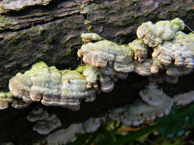 | E' sicuramente un Trichaptum ma, dall'unica foto della superficie fertile non riesco a capire bene se si tratta di Trichaptum abietinum o T. fuscoviolaceum: entrambi crescono su conifera ma hanno diffrenze nella struttura dell'imenoforo e nei caratteri microscopici |