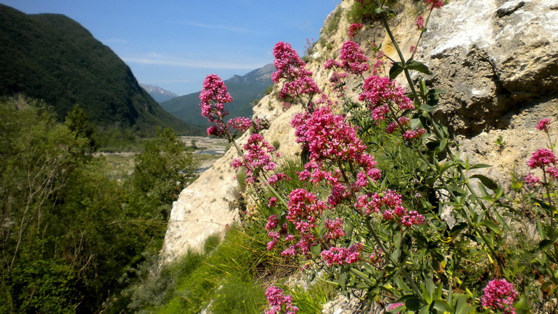 Fiume Secchia,zona dei Gessi.Tra i dirupi,su calcare e gesso.Abbarbicate alle pareti creano un bellissimo colpo d'occhio.Grazie.