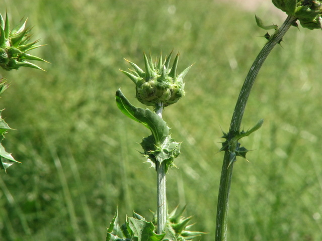 Questo cardo splendido è cresciuto sul bordo di un giardinetto pubblico in città, a Treviglio (125m s.l.m.). L'avevo notato quando era soltanto un ciuffetto di foglie; le foglie erano talmente belle che ho pensato che qualcuno, dovendosi liberare di una pianta da appartamento, per non buttarla l'avesse trapiantata nel giardinetto. Poi l'ho visto crescere e fiorire, ma sono riuscita a fotografarlo(senza dare nell'occhio) soltanto il 9 maggio. Il fiore forse non era eccezionale, ma le foglie erano bellissime e il cespuglio era imponente. Aspettavo che almeno un fiore andasse a seme per procurarmene qualcuno ed eventualmente piantarlo ( so la fine che fa tutto ciò che cresce nei giardini pubblici...). Sono ripassata di lì per rivederlo il giorno dopo e... il mio cardo non c'era più: era ridotto, come tutto il resto del prato, a un cumulo di tristi schegge verdi. La radice però è rimasta nel terreno, anche se il colletto è stato tagliato via. Chissà, forse l'anno prossimo... Ho scorso un po' velocemente la Galleria, ma così spinoso non l'ho trovato... Era talmente bello che magari è una varietà che si coltiva... Grazie. Lucrezia Purtroppo le mie foto non gli rendono giustizia Immagine: