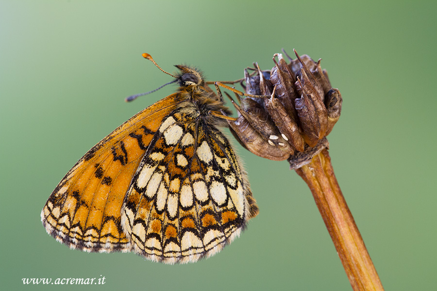 Il sesto archetto nero marginale dell'ala anteriore molto pronumciato farebbe escludere Melitaea varia e optare per Melitaea athalia.