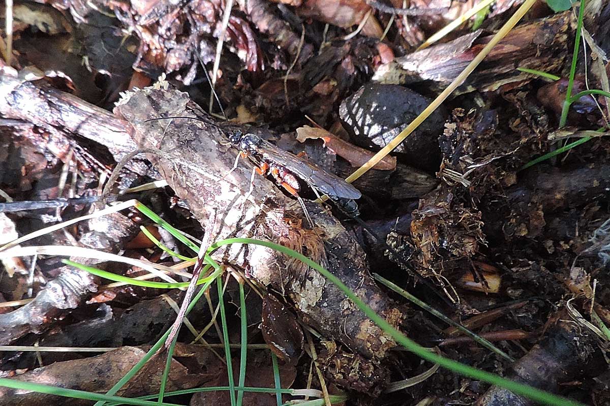 Si tratta di un Ichneumonidae, e la cosa più strana è che sembra avere un ospite aggrappato ad una zampa.