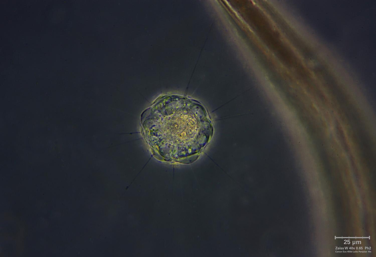 A dir la verità non ho visto nessun nucleo centrale e questo mi aveva fatto pensare a Raphidiophrys viridisma me ne sono ben guardato dall'affermarlo