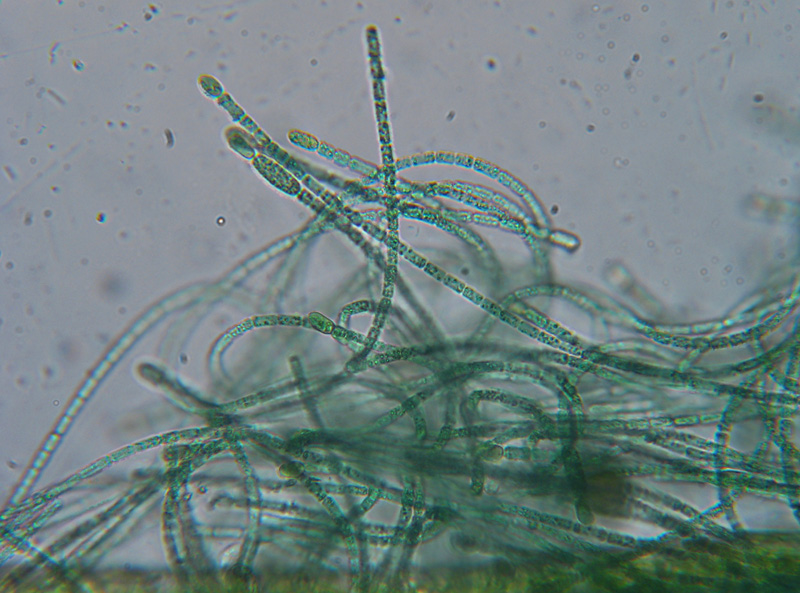 c'è questa Cianoficea che attribuisco al gen. Nostoc ma chiedo conferma a voi; la foto è a 400x: