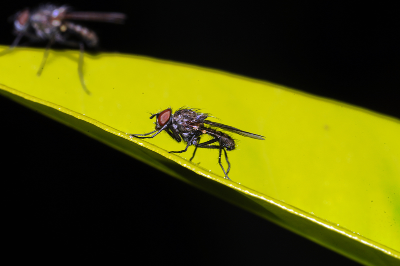 Io posso suggerire la famiglia, e azzardare un genere; per la specie preferisco passare. La famiglia è Anthomyiidae; tra l'altro è la prima volta che intravvedo, in una foto, quello che sulle chiavi è indicato come uno dei caratteri più affidabili per distinguere gli Anthomyiidae dagli altri Muscoidea: la presenza di peluria sotto lo scutello (ed è anche uno dei motivi per cui sono spesso in difficoltà ad individuare la famiglia quando il soggetto è un Muscoidea).