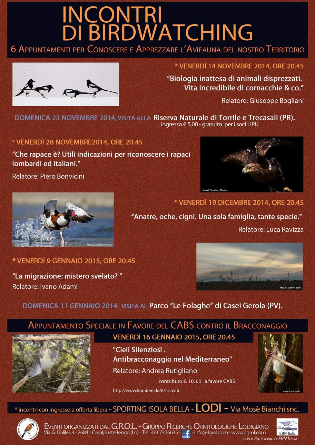 Saluti a tutti!!, è con piacere che vi presento il programma degli incontri e uscite del GROL per quest'inverno, tra novembre 2014 e gennaio 2015....vi aspettiamo numerosi!