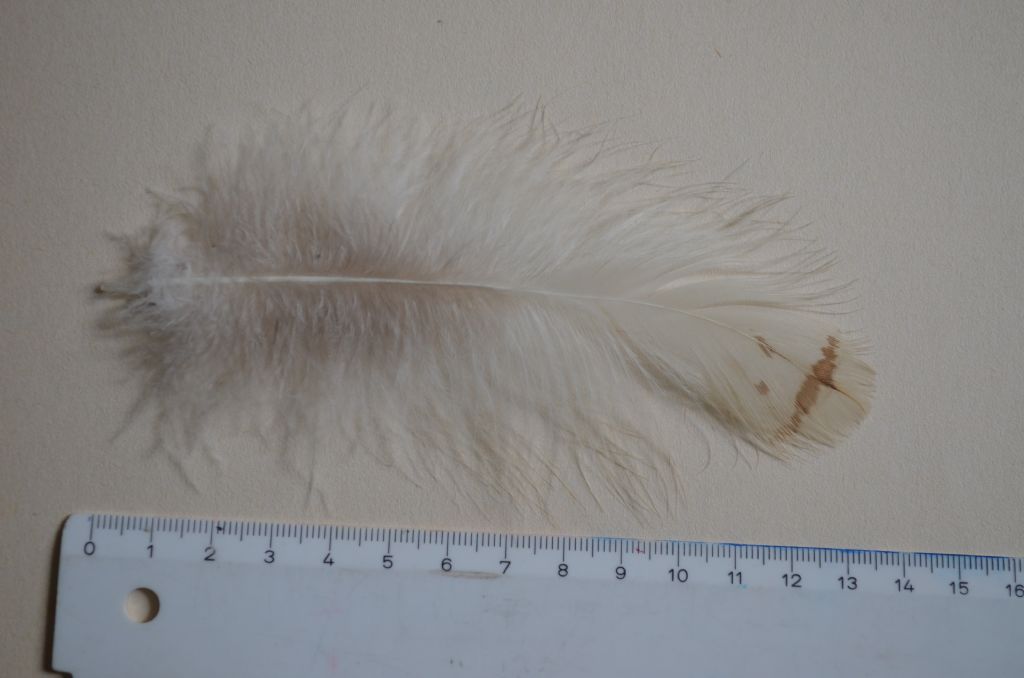 questa piume l'ho trovata in estate in un bosco di latifoglie ad un'altitudine di 500 metri circa. Avrei pensato ad una piuma del petto di un rapace diurno. Idee?