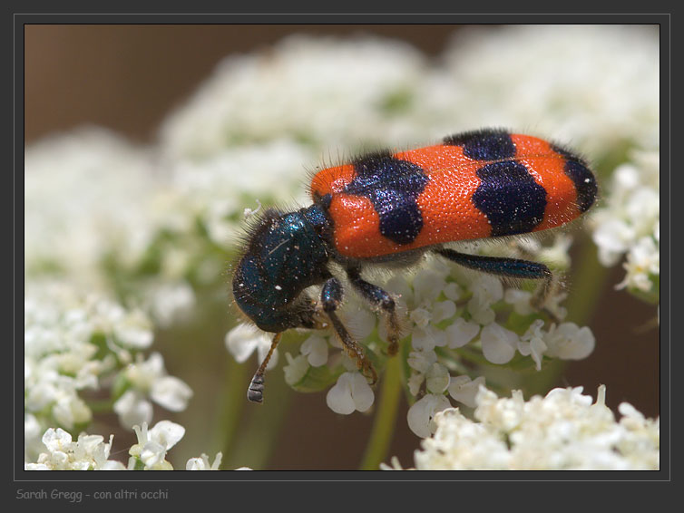 Qui, un comunissimo e ultra-fotografato Trichodes, ma speciale per me perché non è facile riuscire a rendere i riflessi blu delle fasce.