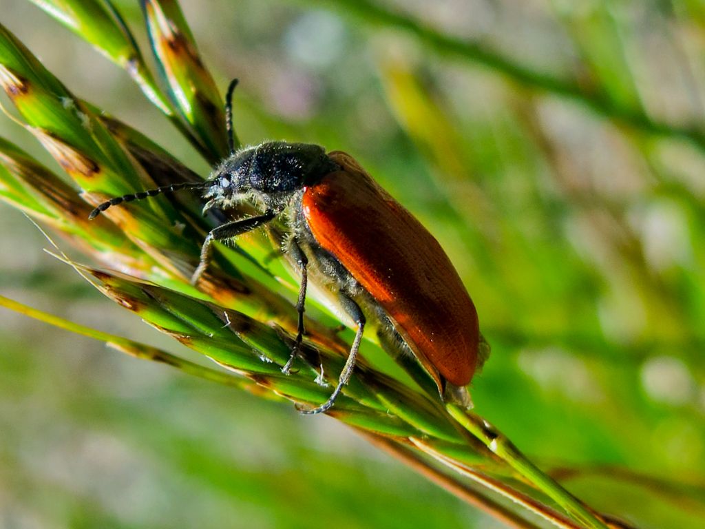 Hai altre foto? Forse è Lydus trimaculatus (forma a elitre non maculate), Meloidae? Il metatarso sembra a 5 tarsomeri ma evidentemente è una illusione ottica perchè non esiste nulla di simile con formula tarsale x.5.5.