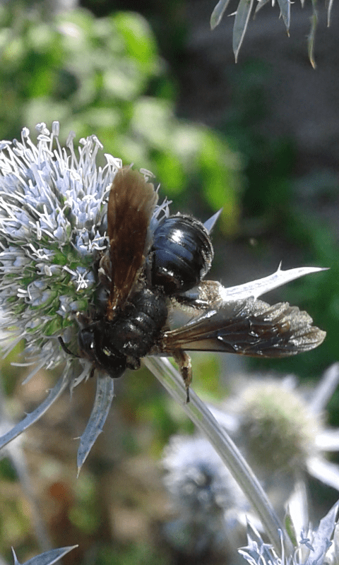 Provincia di Padova, fine giugno 2020. Un unico esemplare di circa 15 millimetri su infiorescenze di Eryngium sp., mentre svariate Xylocopa violacea più grandi preferivano le vicine infiorescenze di aglio. La forma mi ricorda Andrena morio (Andrenidae). Potrebbe essere?