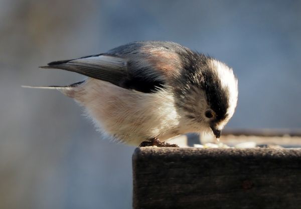 Pogno 19.dicembre. Per dire vero, è già la terza volta che li ho visti a mangiare sulla nostra mangiatoia, solo che oggi mi è scappato anche qualche scatto. (Misero, la luce del sole arrivava molto da basso, ma come documento può bastare.) Anche se i libri dicono che non vengono a mangiare nelle mangiatoie, eccoli qua. Forse la fame o esempio degli altri uccellini che ci mangiavano dentro, ala fine hanno approfittato dell' offerta anche loro. Mangiavano sopratutto il grasso di muca (sego?). Un piccolo particolare - un uccellino senza la lunga coda. La avrà persa o è un giovane?