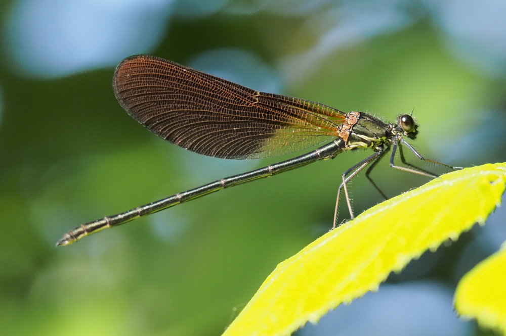 Ciao a tutti, avrei un dubbio su questa Calopteryx: pensavo fosse una C.haemorrhoidalis maschio, ma non vedo il caratteristico colore rosso degli ultimi segmenti addominali. Non può neanche essere una femmina perchè ha le ali troppo scure. Escluderei anche la C.splendens femmina perchè le ali non sono trasparenti.