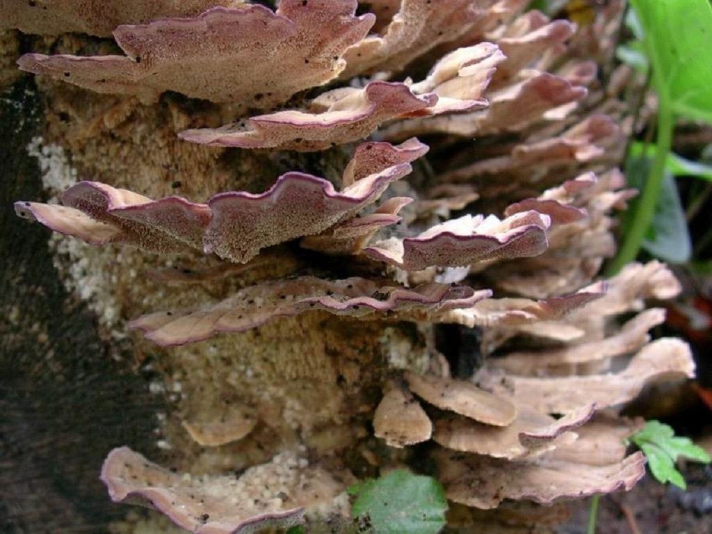 Trichaptum biforme se con crescita su aghifoglia (Quercus sp. ecc. ecc.) altrimenti Trichaptum abietinum se con crescita su conifera.