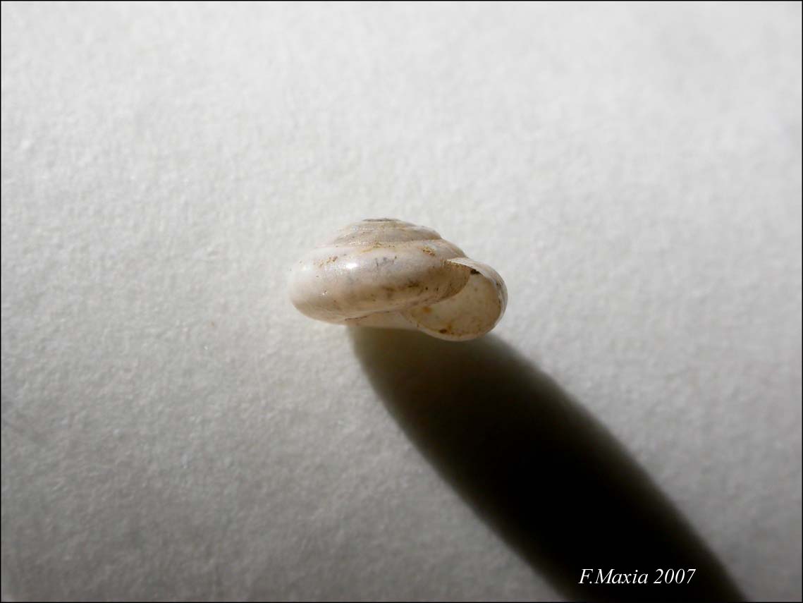 Dal vero appare diverso,forse ho sbagliato la luce che rende l'ombelico completamente scuro e nasconde la forma imbutiforme. Le dimensioni sono maggiori dell'esemplare linkato, circa 7 mm con un giro in meno e corrispondono a quelle di O. hydatinus, proverō a farne una foto migliore.