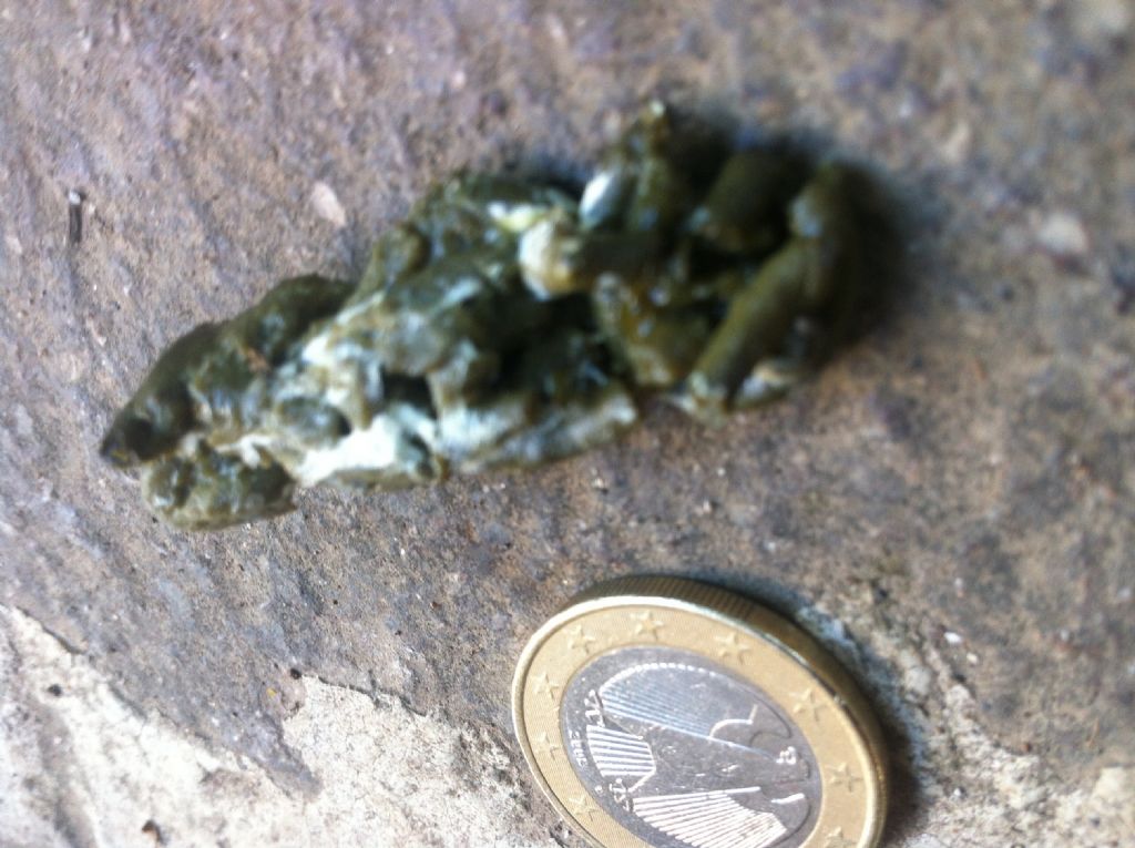 non avevo visto questa immagine; a me sembra oltremodo interessante perché qui io vedo delle feci, come ha detto giustamente Athena, complessivamente ricoperte da un involucro di urati, ma internamente organizzate in un groviglio (un unico cilindro?) che non lo è; in genere la massa biancastra o ricopre un interno omogeneo, oppure è all'estremità della fatta...mi rimane difficile immaginarne il meccanismo di formazione;