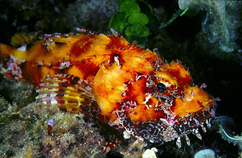 Mi è capitato anche di osservare degli esemplari di Scorpaena porcus con macchie dorate poco estese su testa e dorso!!