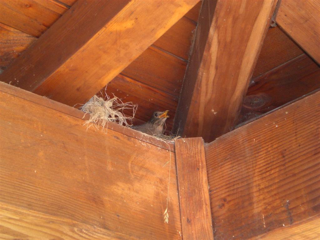 E' una femmina di merlo con i nidiacei.