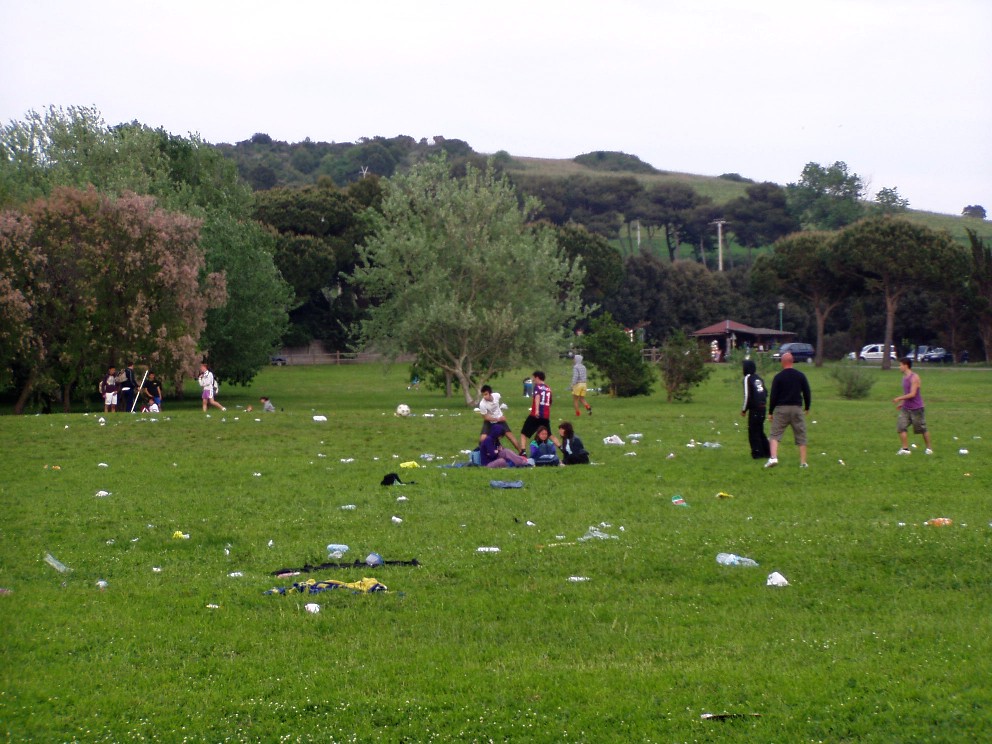203,04 KB Il pratone di Baratti a fine giornata, costellato di rifiuti.