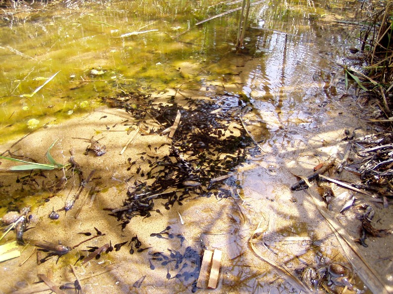 Ripsondendo a entrambi, posso dire che vedere girini di rospo comune a 5-10 m di distanza dalla linea di costa è un fatto per me unico! Comunque nel Fosso Valgranita l'acqua è dolce, in quanto scorre verso il mare: la spiaggia è abbastanza inclinata. Solo in caso di mareggiate qualche onda può arrivare verso il fosso, ma solo in parte. Non devono trarre in inganno i residui di posidoia lungo il fosso: con l'acqua che scorre, anche eventuali apporti salini vengono eliminati. In estate il fosso non scorre più e l'acqua viene alla fine assorbita dal fondo sabbioso; solo un po' più nell'interno rimane qualche zona con acqua, in mezzo allo sporco di natura anche umana che si accumula "classicamente" nei fossi (purtroppo). Per quanto riguarda lo smeraldino, è vero, tollera una certa salinità, ma anche nel vicino Fosso della Focecchiola l'acqua è dolce per gli stessi motivi esposti prima. Questo fosso però tende a prosciugarsi prima e non tutti gli anni permette la riproduzione di tale anfibio; quest'anno, date le abbondanti piogge, le cose sono andate benissimo: ora è secco, ma i girini hanno fatto tutti in tempo a metamorfosare.  Presto vi aggiorno con altre immagini.