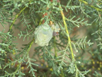 Si tratta di Cupressus arizonica, ma è una specie coltivata, il forum per regolamento non tratta specie coltivate non originarie del mediterraneo. In realtà questa specie è in Italia in via di naturalizzazione.