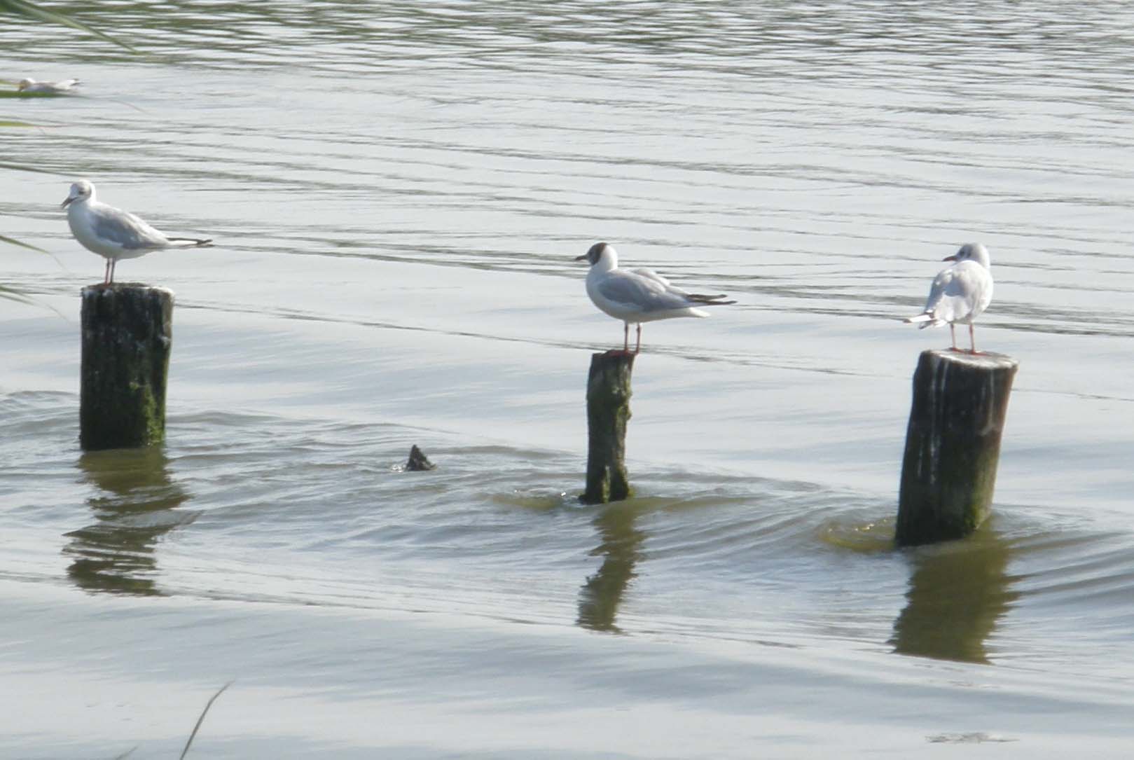 Gli uccelli sono in muta e potrai quindi trovare gabbiani comuni con testa bianca, testa nera, e testa intermedia...