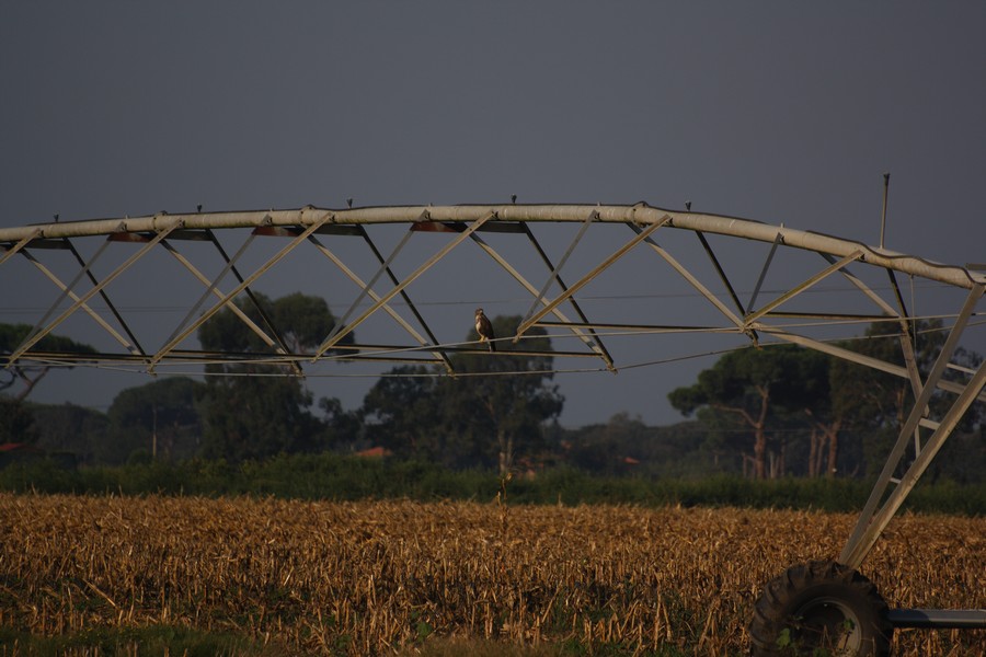 oggi a maccarese ho assistito ad una scenetta che ha visto protagonista una poiana. era posata su un irrigatore
