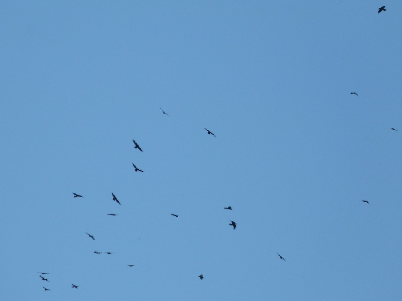 Non avevo mai visto tanti corviimperiali insieme. Saranno stati almeno 30. E giocavano col vento come i gracchi, lasciandosi sollevare e poi posandosi sulla cima di un'alta roccia. Le foto non sono gran che, sia per la macchina inadatta, che per la distanza, che, a seconda della foto, era tra 100 e 300 metri.